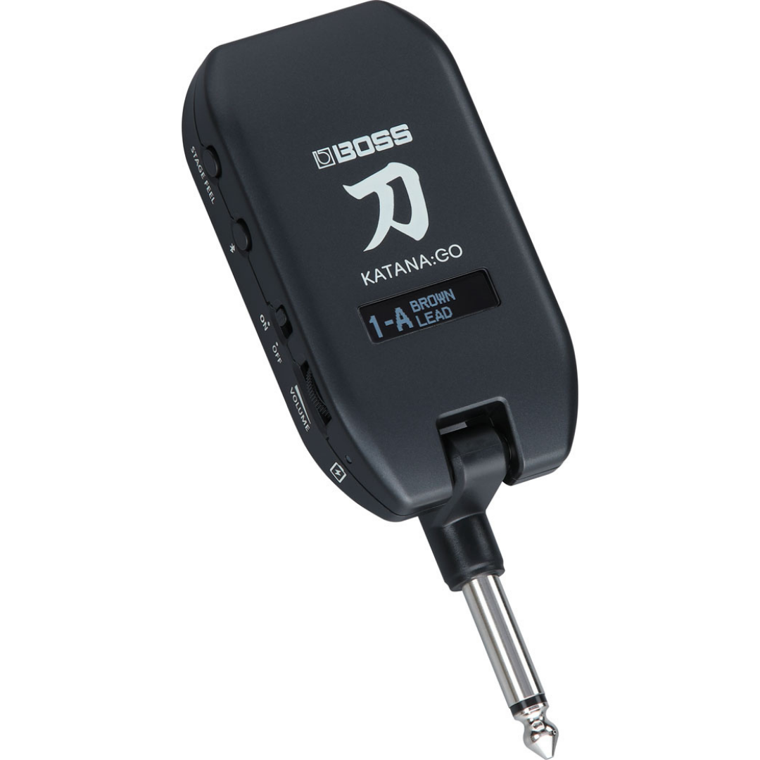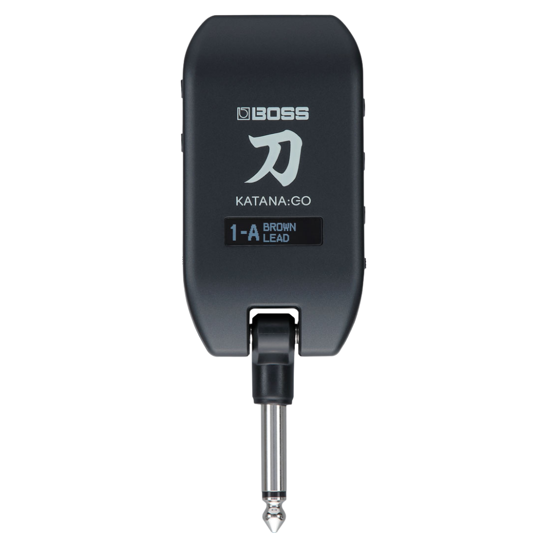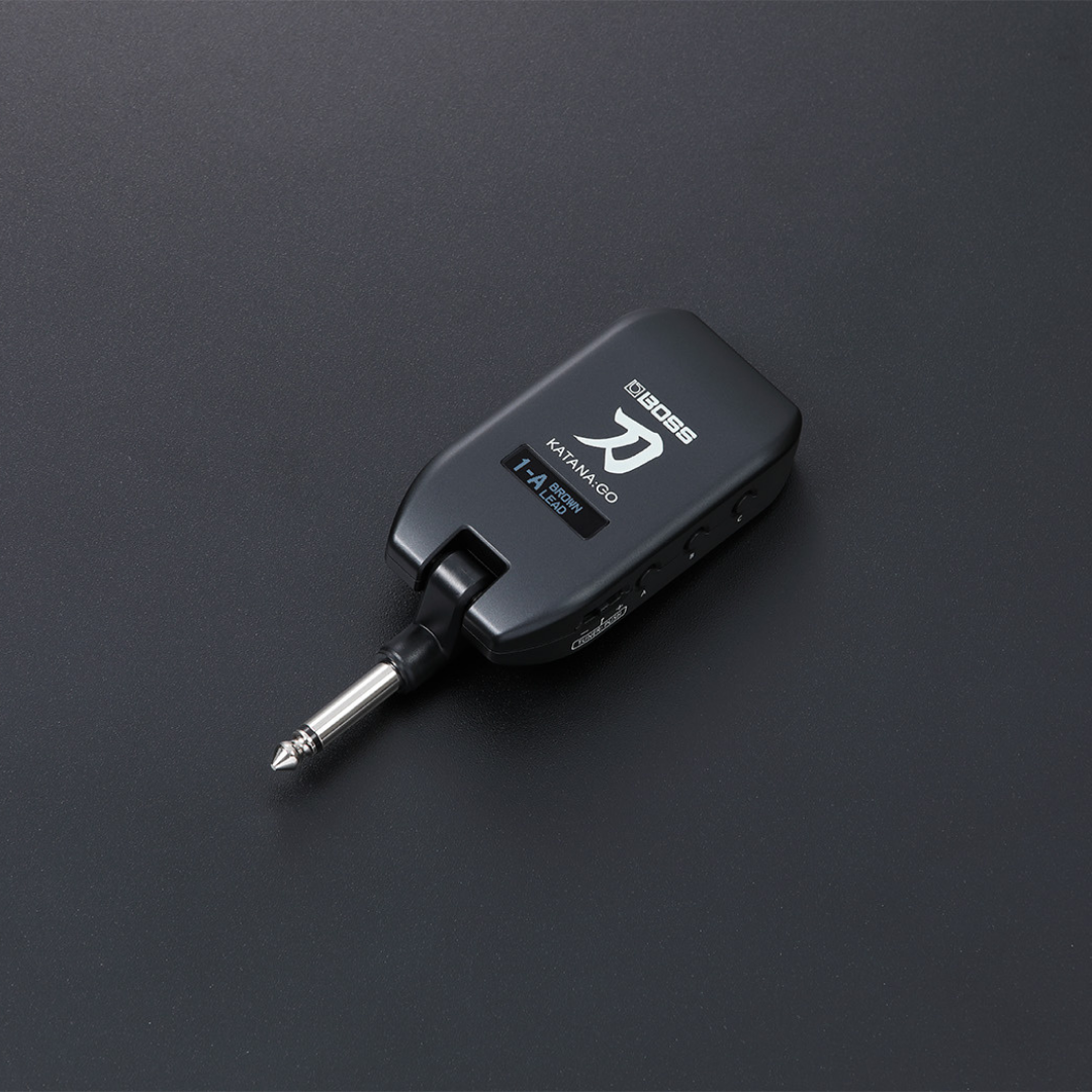 KATANA:GO delivers premium sound for everyday playing without the hassle of amps, pedals, and computer interfaces. Simply plug it in, connect earbuds or headphones, call up a memory, and start rocking. Onboard controls provide access to volume, memory selection, and other essential functions, and you can easily view the current memory and tuner with the built-in display. The rechargeable battery provides up to five hours of continuous playing time, and the integrated 1/4-inch plug folds down to create a pocket-size package that’s ready to travel anywhere.