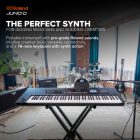 With its rugged and lightweight build, JUNO-D is ideal for busy musicians who need simple load-in and fast setup in any environment. The keyboard can be powered via AC or a standard USB-C mobile battery, making it the ultimate on-the-go solution for shredding on club stages, creating music content in a home studio, or performing on the street.