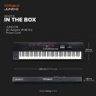With its rugged and lightweight build, JUNO-D is ideal for busy musicians who need simple load-in and fast setup in any environment. The keyboard can be powered via AC or a standard USB-C mobile battery, making it the ultimate on-the-go solution for shredding on club stages, creating music content in a home studio, or performing on the street.